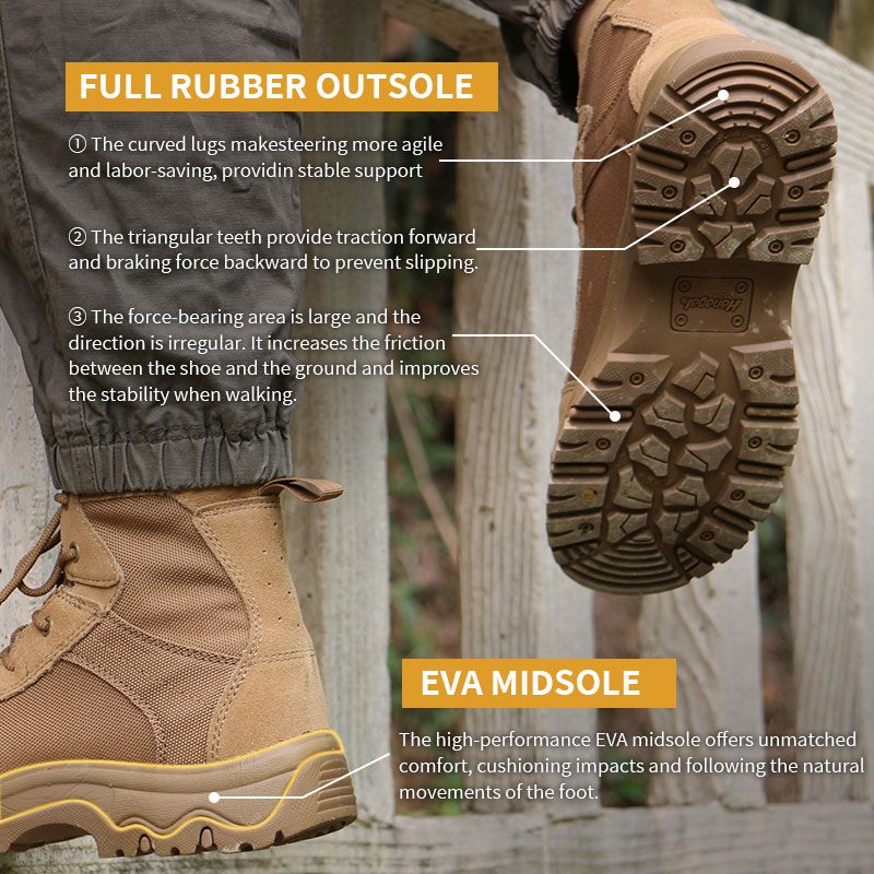 Aceste ghete tactice din cauciuc din Cordura sunt în stoc și gata de livrare, cu comenzi începând de la doar 10 perechi. Pentru mai multe detalii sau întrebări despre prețuri, nu ezitați să contactați oricând. Personalizarea este disponibilă și cu o comandă minimă de 800 de perechi. Și acest model are următoarele avantaje: