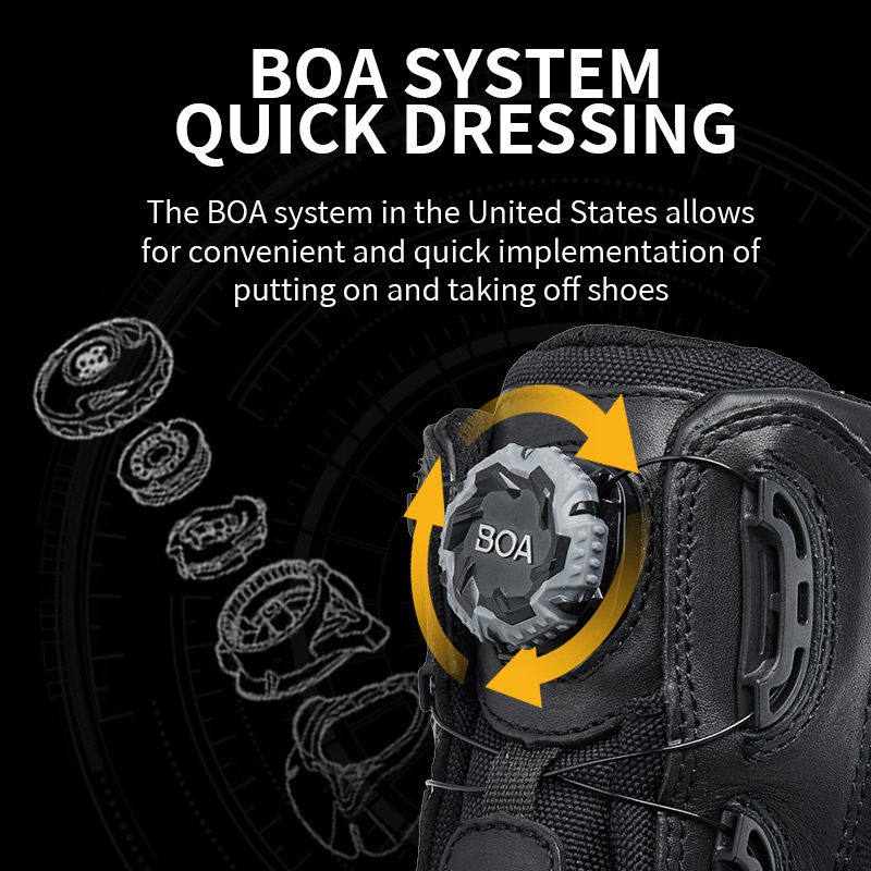 Sistemul BOA face pornirea/oprirea fără efort: o răsucire rapidă pentru a strânge, o tragere pentru a elibera. Fără șireturi, fără bătăi de cap.