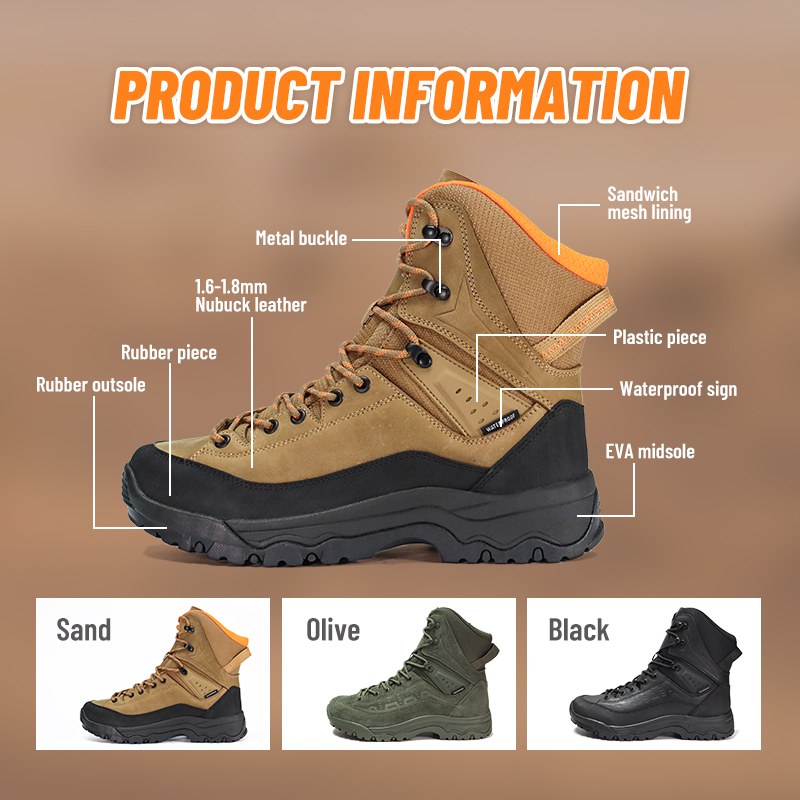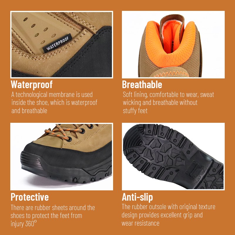 Acești pantofi de drumeție Strong Grip Anti-Slip Waterproof sunt disponibili pentru personalizare în culori, materiale și detalii, cu MOQ de 800 de perechi, ideali pentru colaborări cu mărci și achiziții în grup. Și acești pantofi de trekking au următoarele avantaje: