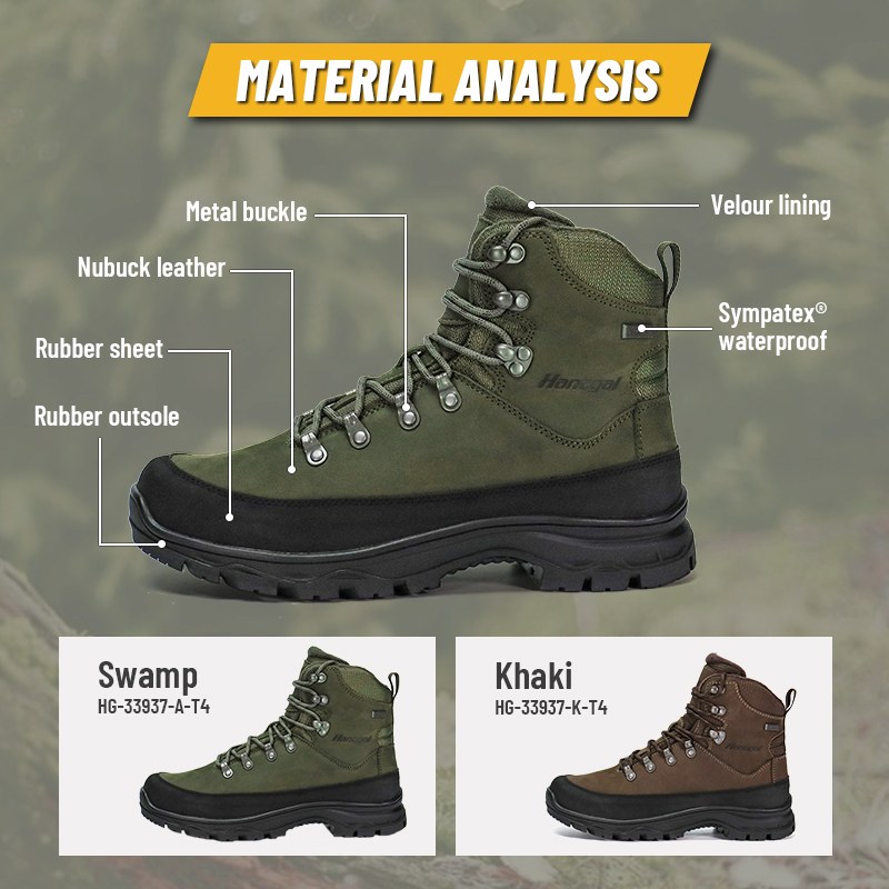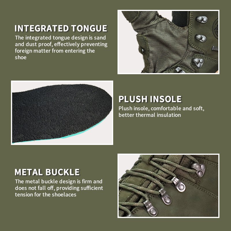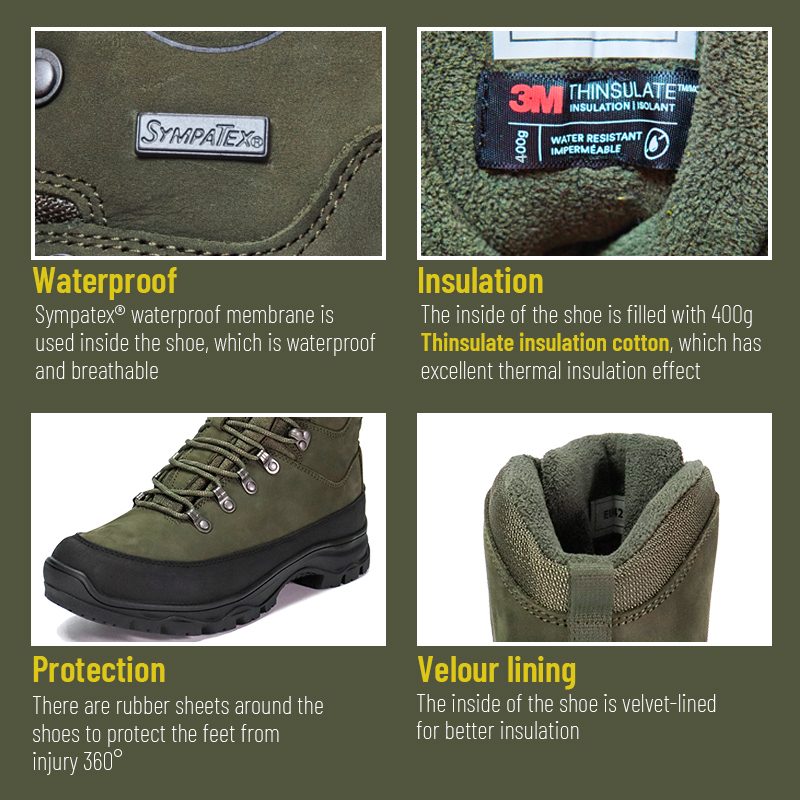 Aceste cizme de vânătoare Sympatex Waterproof Insulation Thinsulate sunt disponibile pentru personalizare în culori, materiale și detalii, cu MOQ de 800 de perechi, ideale pentru colaborări cu mărci și achiziții în grup. Și aceste cizme de vânătoare au următoarele avantaje: