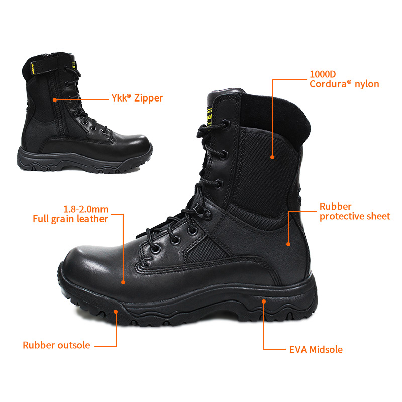 Pielea integrală îndeplinește fiabilitatea YKK. Cizmele de poliție din piele integrală cu fermoar YKK combină durabilitatea premium din piele cu performanța de încredere a fermoarelor YKK - fixare rapidă, fixare sigură și construită pentru a rezista în fiecare schimb. Trimite-ne o întrebare pentru mai multe informații.